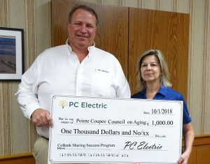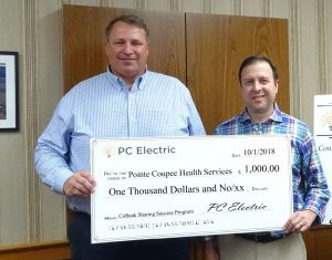 On Wednesday, September 5, 2018, PC Electric presented H.O.P.E Ministry’s of Pointe Coupee, Pointe Coupee Council on Aging and Pointe Coupee Health Services Foundation with a donation check in the amount of one thousand dollars which was matched by CoBank through its Sharing Success program. Earlier this month, PC Electric General Manager Myron Lambert presented each organization with the matching funds from CoBank. The Sharing Success program was established in 2012 to celebrate the International Year of the Cooperative. Since the program’s inception, CoBank and its customers have together provided more than $25 million in support to charitable organizations across the nation.